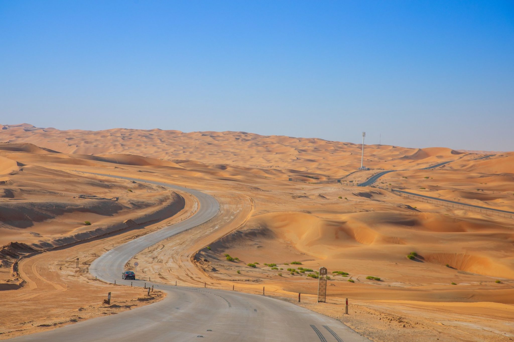 Jeżeli chcielibyście wjechać głębiej w pustynie udajcie się z Oazy Liwa dalej na południe, w kierunku Moreeb Dune. W miejscu tym znajdziecie największe na świecie wydmy, które sięgają 300 metrów wysokości. Przez pustynię biegnie droga, wijąca się pomiędzy potężnymi wydmami – widoki jednorazowe!