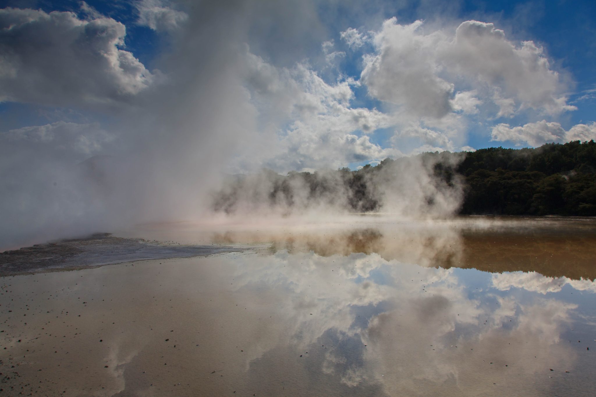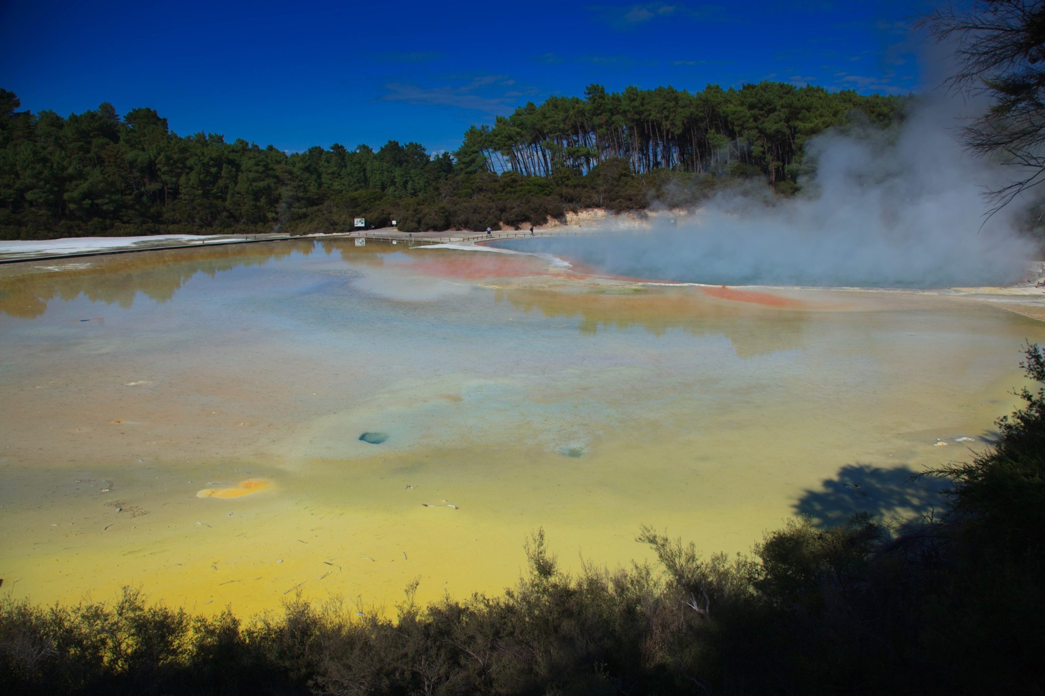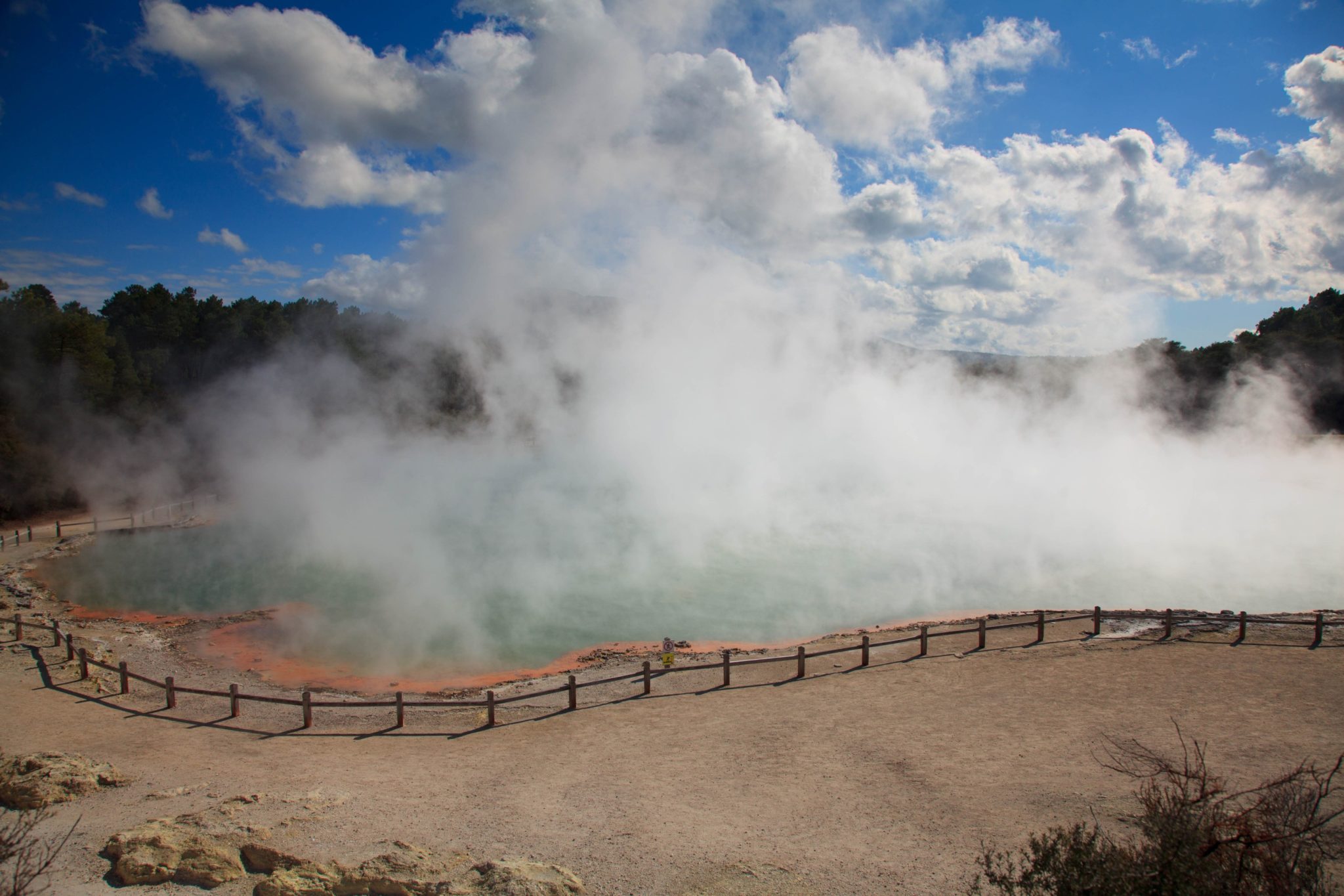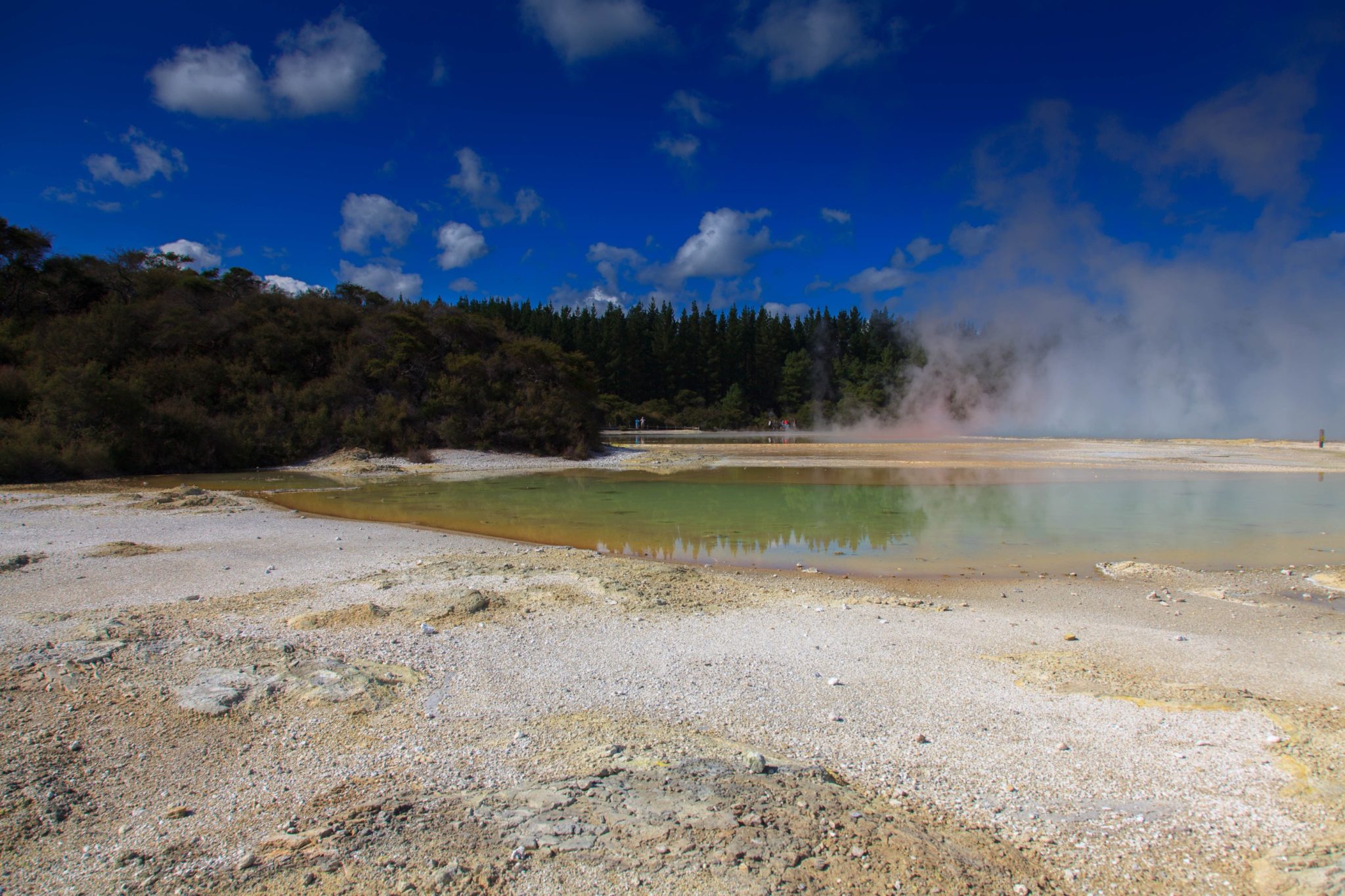 Kolejnym Punktem programu jest Rotorua. Miejsce to to takie małe nowozelandzkiej Yellowstone. Znajdziemy tutaj drugi na świecie pod względem wielkości zbiornik termaly – Champagne Pool.