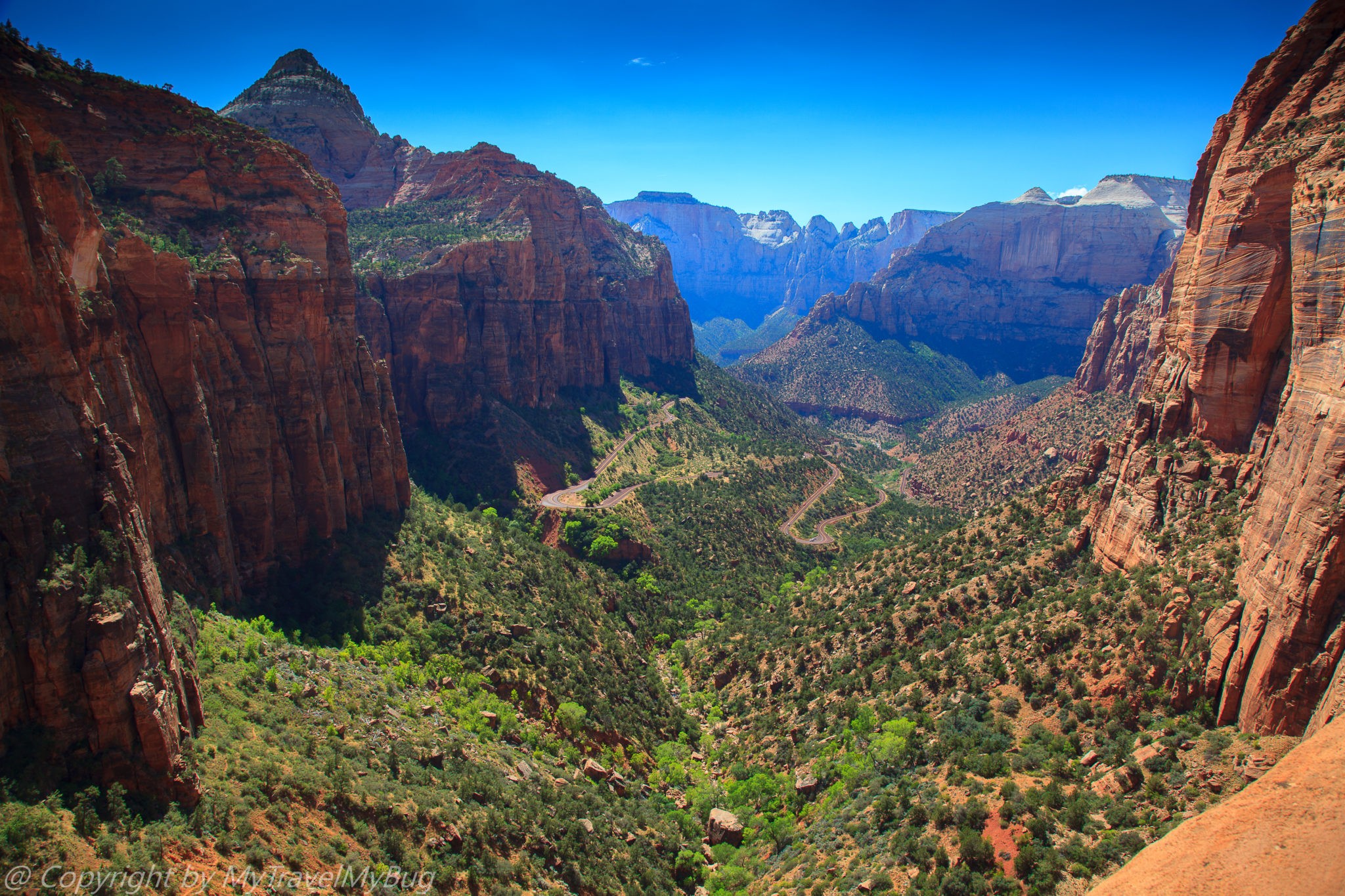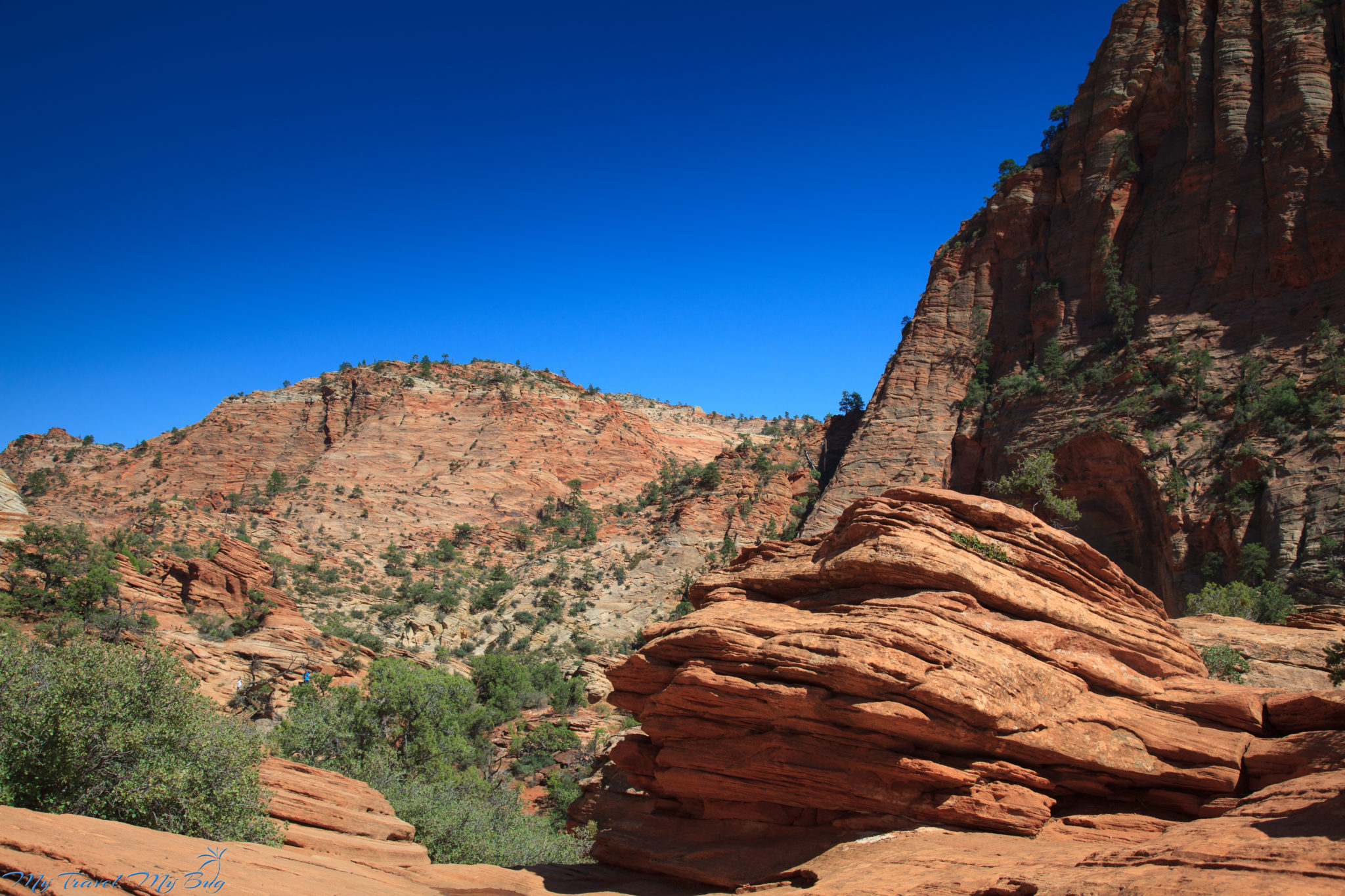 Przejazd przez Zion dostarcza nie lada wrażeń. Jeżeli macie trochę więcej czasu warto przeznaczyć na niego dwa trzy dni. Pierwszy dzień możecie spędzić na wędrówkach po wielu wspaniałych trasach. Dla odważnych, pozbawionych lęku wysokości polecam wspinaczkę na punkt zwany Angels Landing.