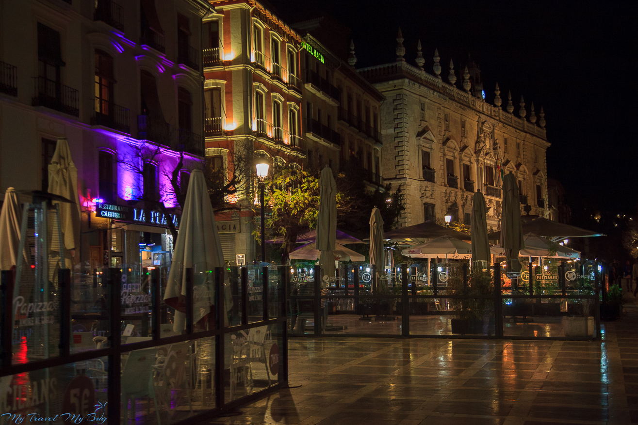 Z lekko poniesionym ciśnieniem udajemy się do hotelu. Na szczęście okazuje się, że goście hotelowi mają prawo do jazdy uliczkami z ograniczonym ruchem. Zostawiam na recepcji numer rejestracyjny a sympatyczna pani obiecuje przesłać go do systemu policyjnego, aby uniknąć dwóch mandatów. Wchodzimy do pokoju, wyglądamy przez okno i nasze złe doświadczenia z Granady rozwiewają się jak poranna mgiełka. Hotel – Nest Style Granada – położony jest bajecznie, w zasadzie w samym centrum miasta. Z okna widzimy pobliski plac, eleganckie oświetlone kamienice, nieco dalej znajduje się katedra. Pomimo tak świetnego położenia noc ze śniadaniem w tym hotelu jest w bardzo przyzwoitej cenie. Co więcej, łóżka okazują się super wygodne, śniadania pyszne a widok z jadali na katedrę po prostu świetny. Grzechy zostają odpuszczone!