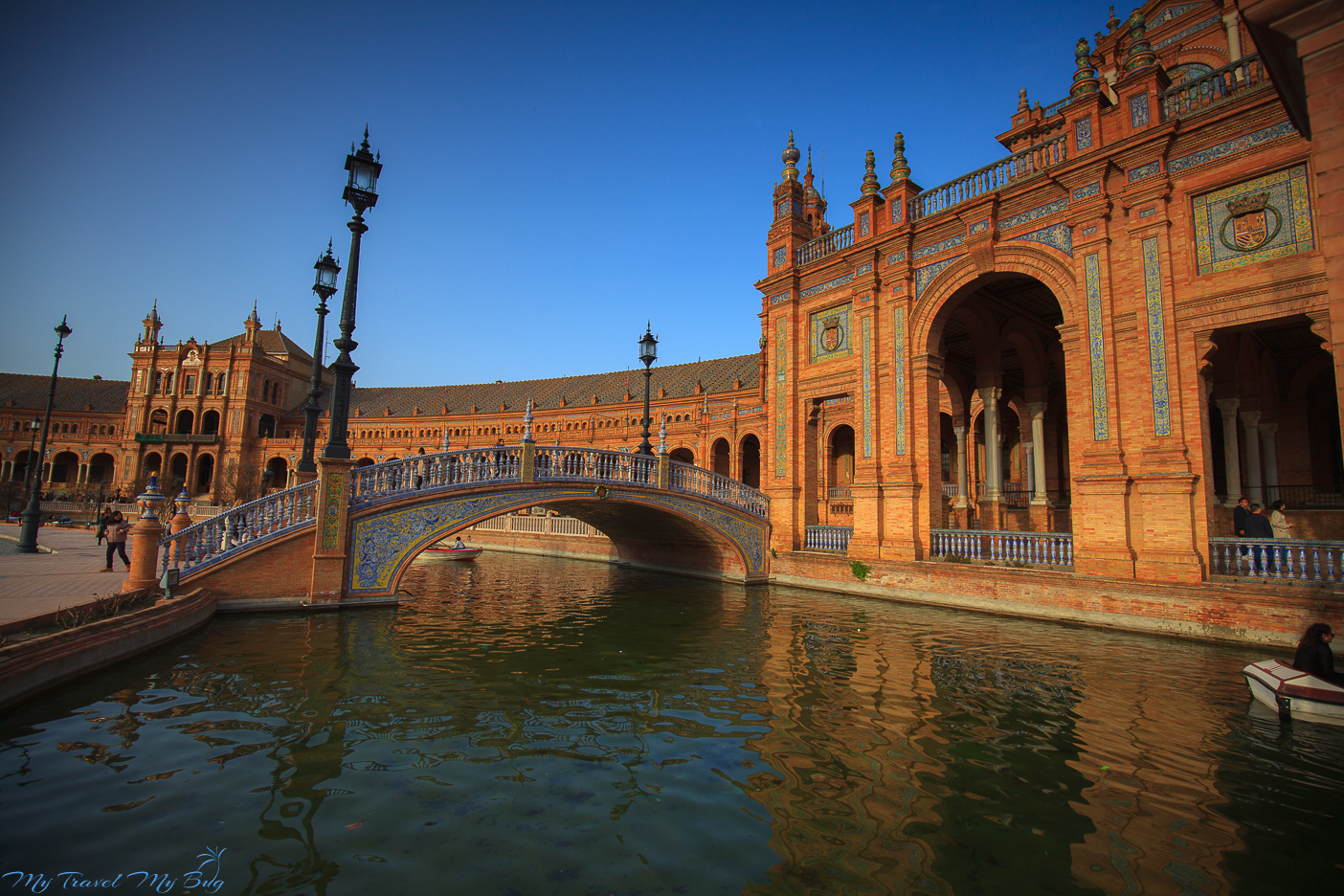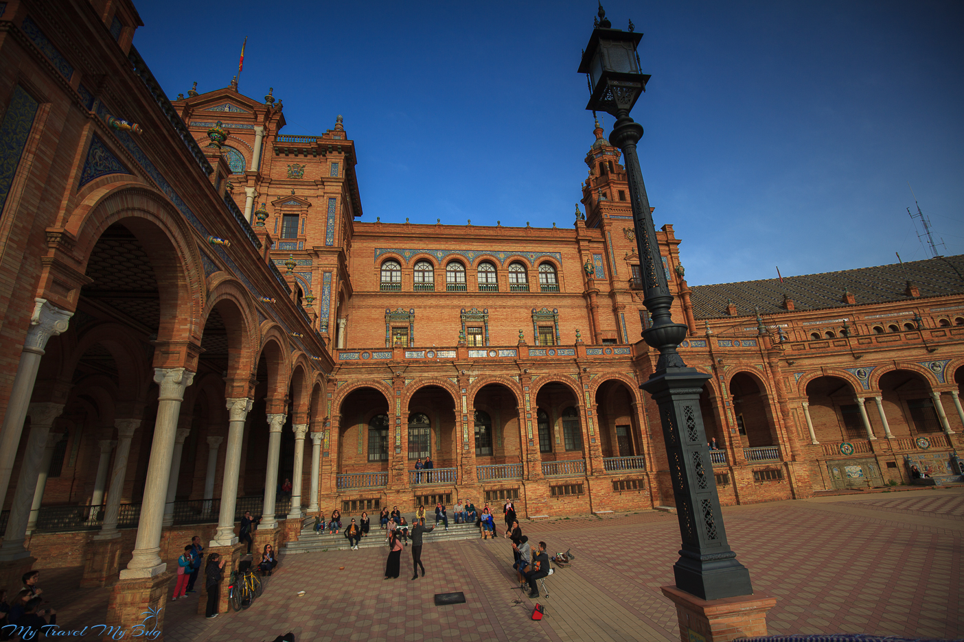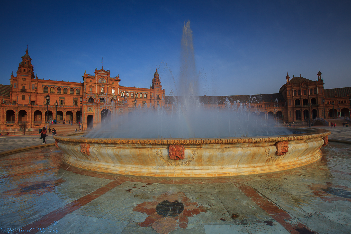 Co ciekawe miejsce to stanowiło plener dla planety Naboo, podczas kręcenia Epizodu II: Atak Klonów sago Gwiezdnych Wojen. U podnóża Pałacu Hiszpańskiego możemy odnaleźć przepiękne kolorowe wnęki, z których każda posiada własną ławeczkę. Wnęki te pokryto kolorowymi kaflami na których zaznaczono prowincje Hiszpanii. W sumie na placu znajdziemy 48 wnęk, z których każda symbolizuje jedną z prowincjii